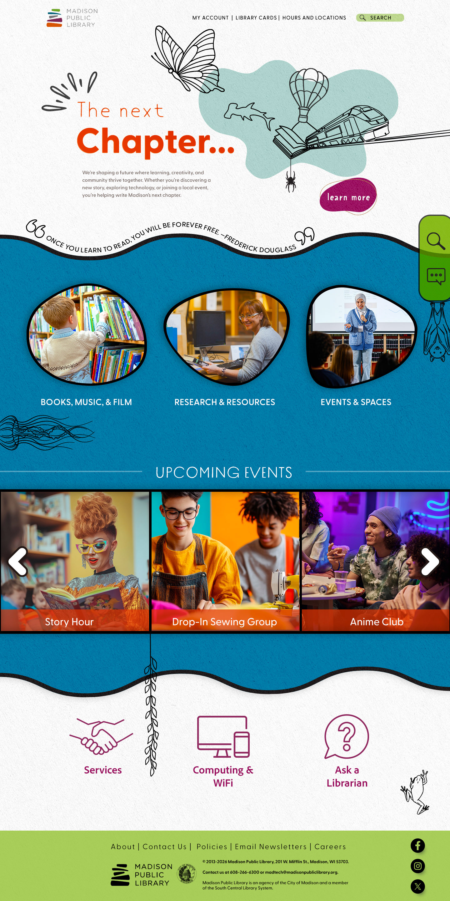 Madison Public Library is all about community, education, and imagination. I wanted to create a modern digital presence with a brighter, more approachable visual system. The final design balances functionality with a vibrant, engaging aesthetic that reflects the library’s role as a community hub.