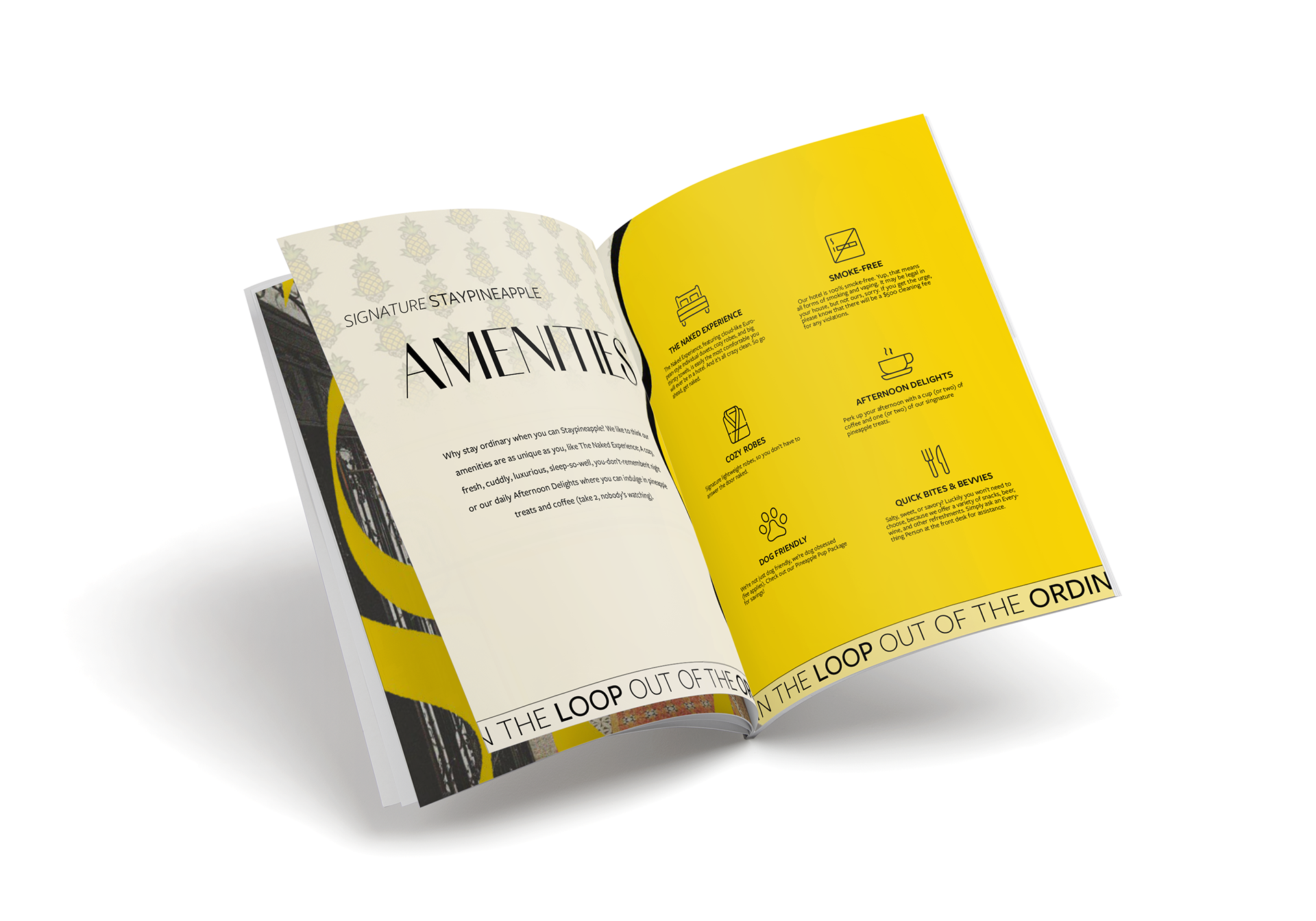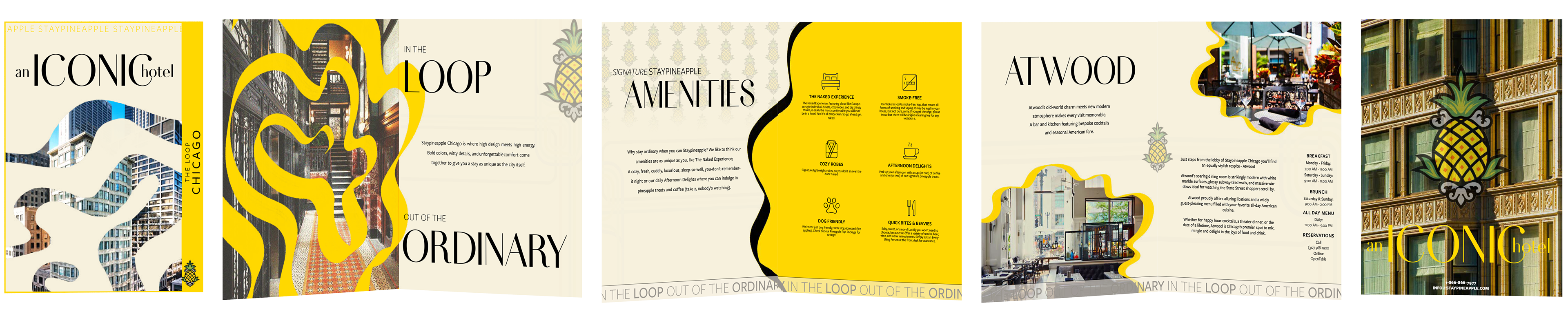 This brochure reimagines Staypineapple’s distinctive brand voice through a Beaux-Arts lens. The design merges ornate architectural motifs with contemporary minimalism, creating a visual conversation between history and modern hospitality.